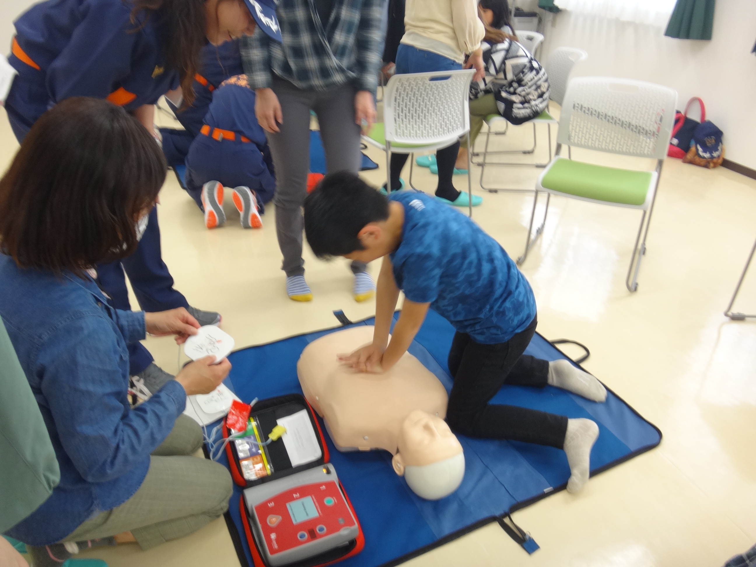 4月16日(日)午前10時30分、星崎コミセンに於いて星崎学区子ども会役員の皆さんによる、AEDを使った心肺蘇生法講習会が開催されました。