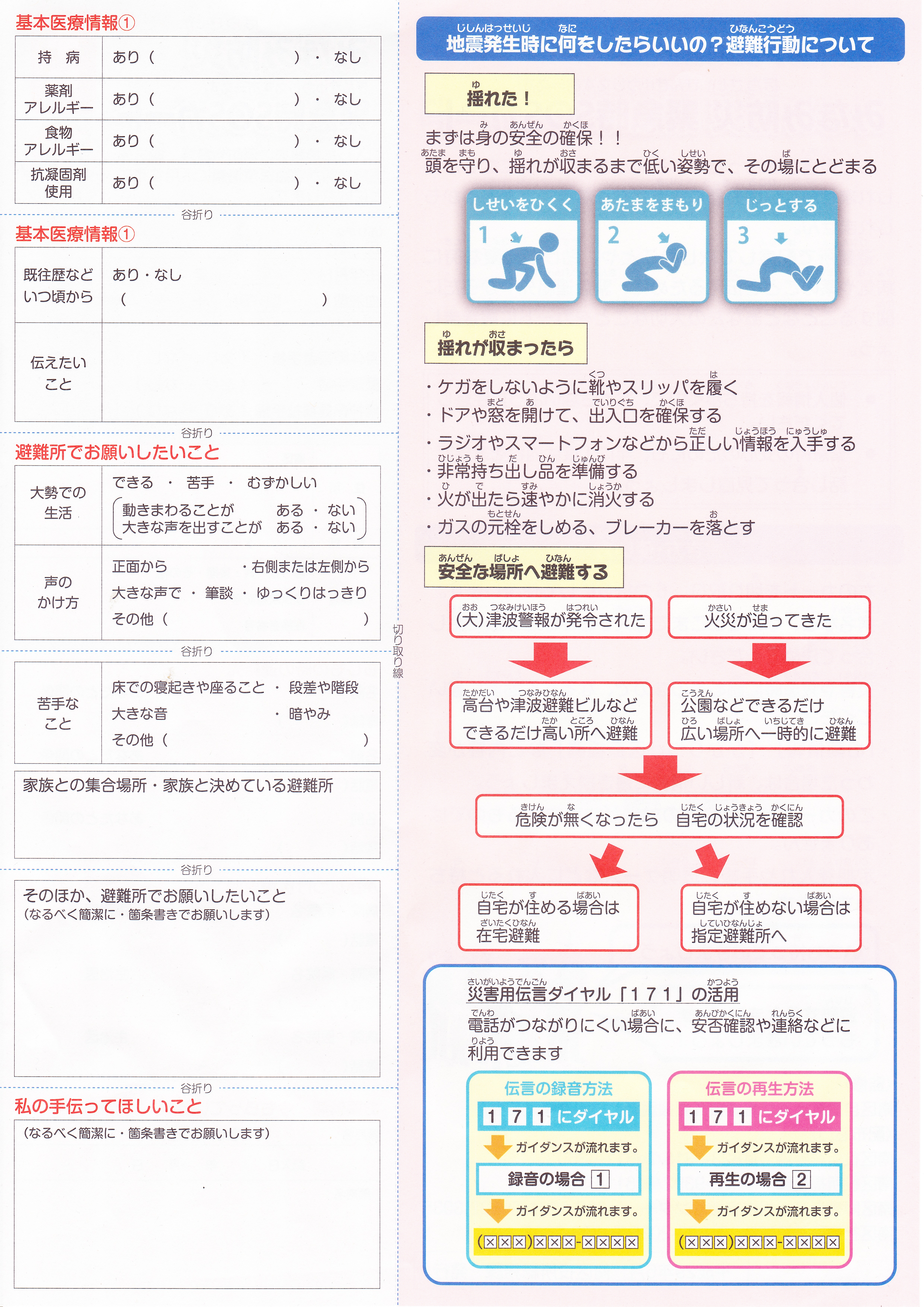 高齢者や障がい者はいつも身に付け、もしもの時に役立てましょう。