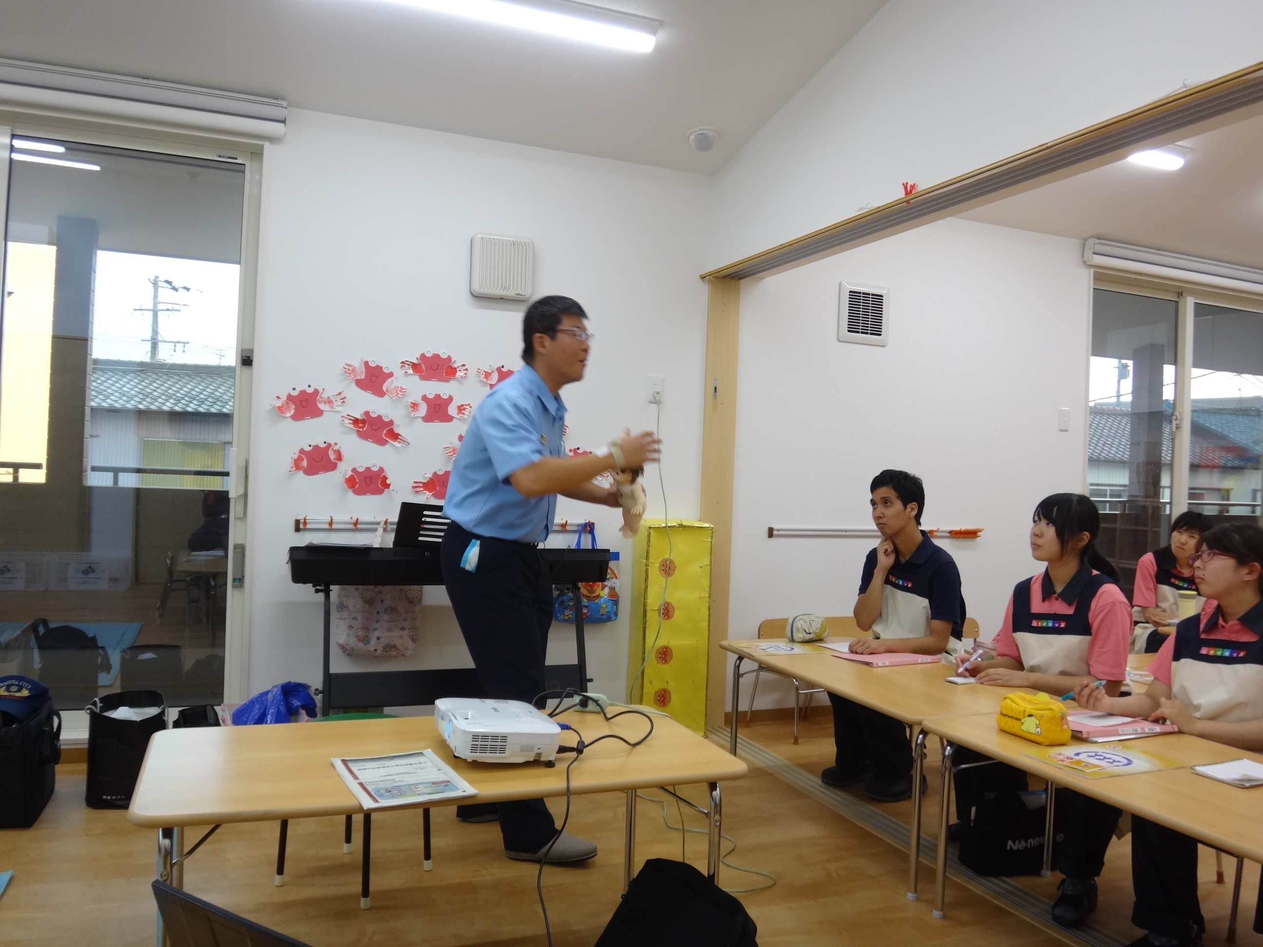 子どもを預かっている時間帯に南海トラフ巨大地震が起きたとき、どのように子供の命を守るか、身振り手振りで核心に触れた講話になりました。
