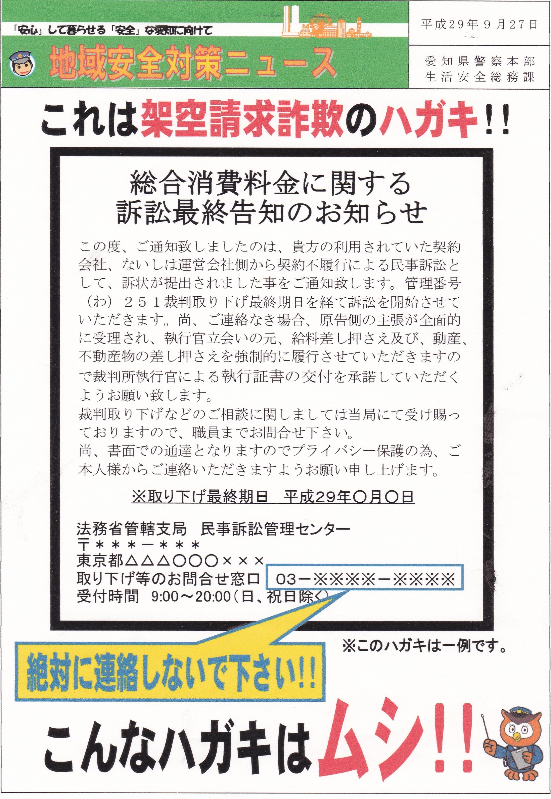 皆さん、騙されないように注意しましょう!