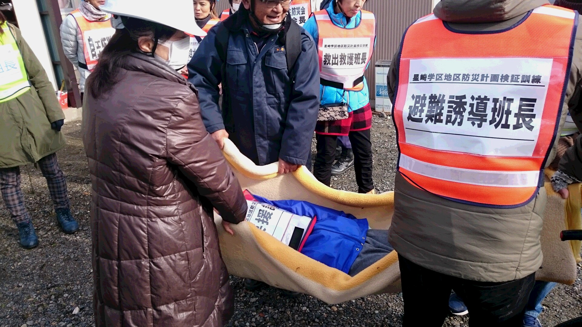 1月28日(日)午前9時30分、先週の事前講習を参考に四町公民館を一時集合場所に各組長から現地本部へ被災状況が報告されてきます。