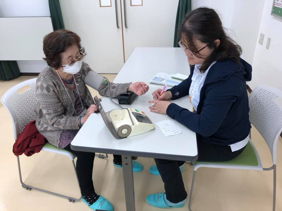 名古屋市保健所南保健センター(今年度から南保健所から名称が変わりました)保健師の岩瀬真美さんから血圧の測定を受け、皆さんすっきりしたお顔でした。