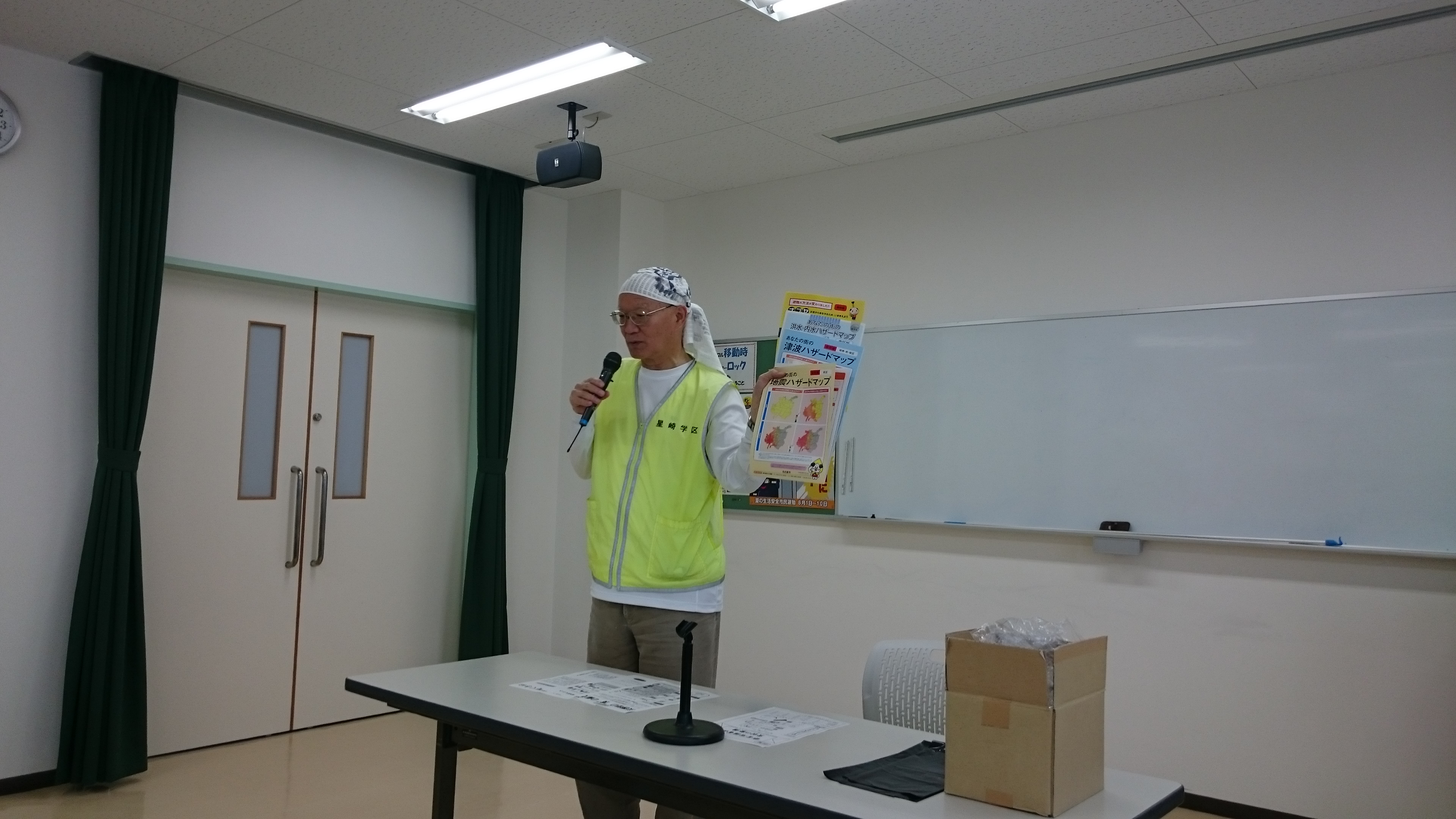 津波からの避難は仮想避難所をコミセンにして、振り返りの中では荒川会長からトイレの備えについて話を伺うことができました。