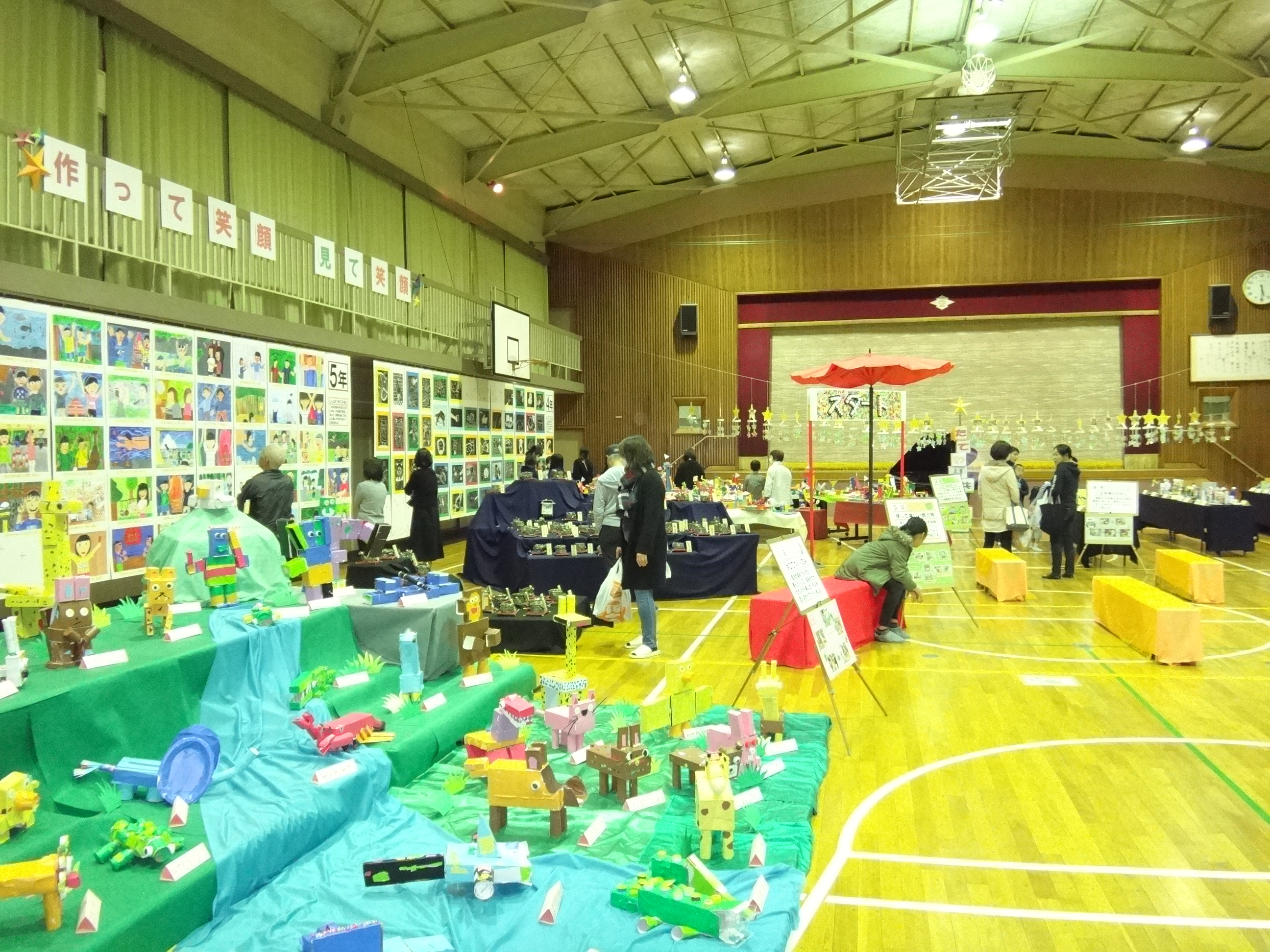 午後3時から公開された体育館には力作がいっぱい展示され、親子連れがたくさん訪れていました。