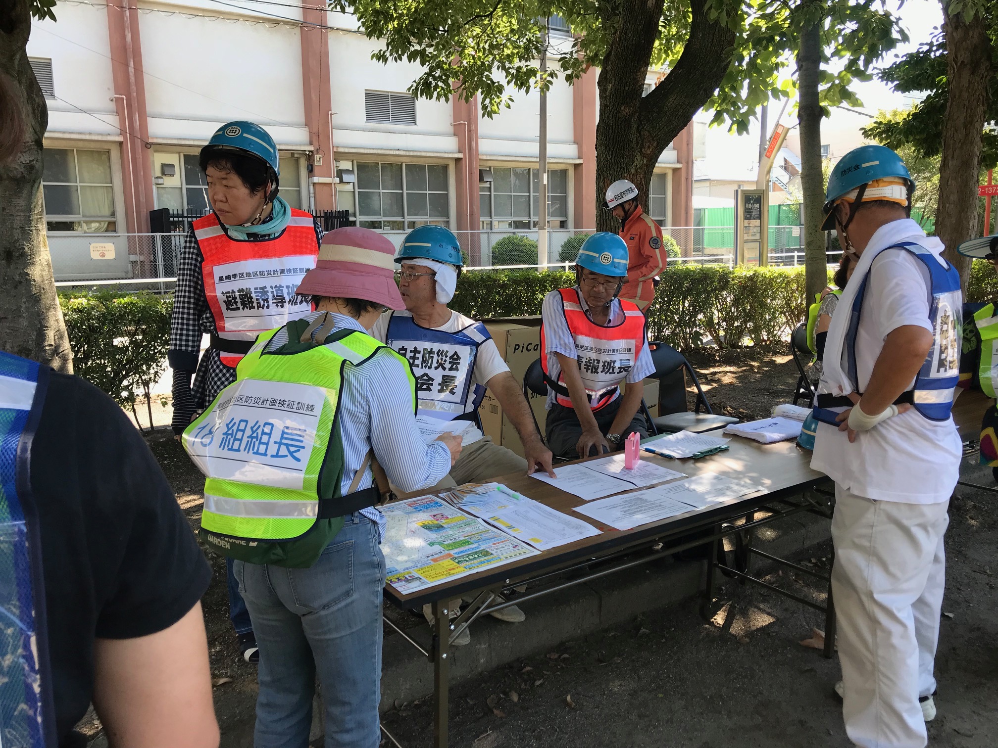 8月26日(日)南野二丁目自主防災会では、一時集合場所の南野公園に現地本部を立ち上げ、地域密着型訓練を実施しました。