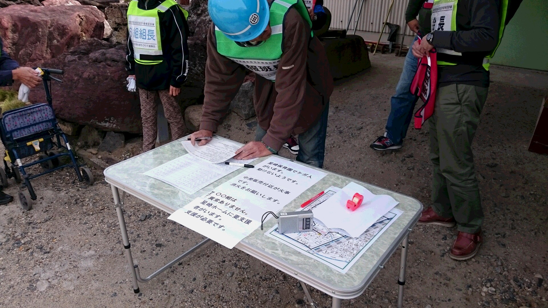 本番では組長さんが情報班として安否確認や被災状況を現地本部へ持ち寄ります。